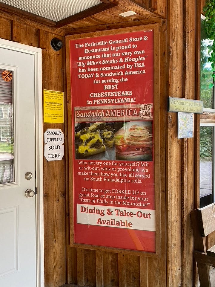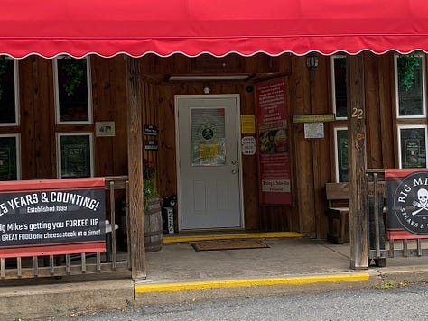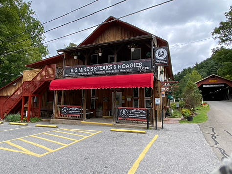 If you happen to stop by when they are open, you can stop at Big Mike’s Steak and Hoagies for a meal. It is right next to the covered bridge, making it a nice lunch stop.